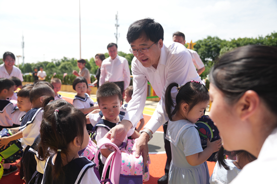 占地450余平方米的“大飛機金科寶貝樂(lè )園”里,孩子們在《起床操》的旋律中盡情地歡笑、玩耍。賀東風(fēng)一行來(lái)到孩子們中間,觀(guān)看幼兒舞蹈,送上節日禮物,察看了寶貝樂(lè )園配備的玩沙區、玩具區、運動(dòng)區、益智區及種植區5個(gè)功能區,了解托育園發(fā)展建設情況。賀東風(fēng)看到孩子們朝氣蓬勃、健康向上的精神風(fēng)貌十分高興,希望托育園讓每個(gè)孩子都能健康快樂(lè )成長(cháng)。
