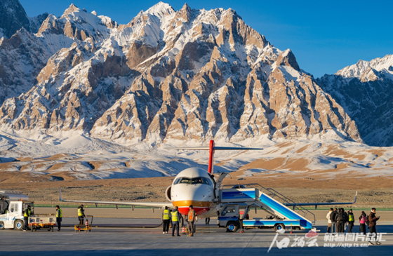 2024年11月30日,一架C909飛機在塔什庫爾干紅其拉甫機場(chǎng)。王脊梁攝